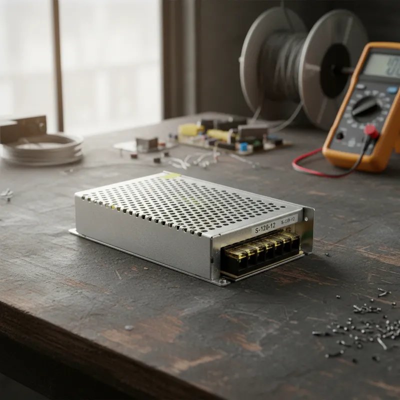 - Conexão por borne - 5 Bornes (Fase, Neutro, Terra, Positivo Saida 12V, Negativo Saida 12V)