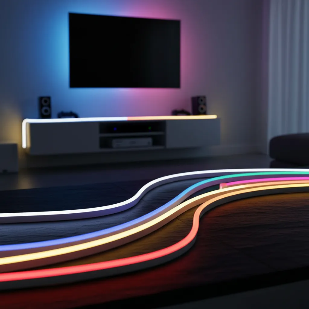 Mangueira RGB de led flexível, efeito neon durável e altamente resistente e luz com uniformidade e muito brilho. Para uso interno e externo.