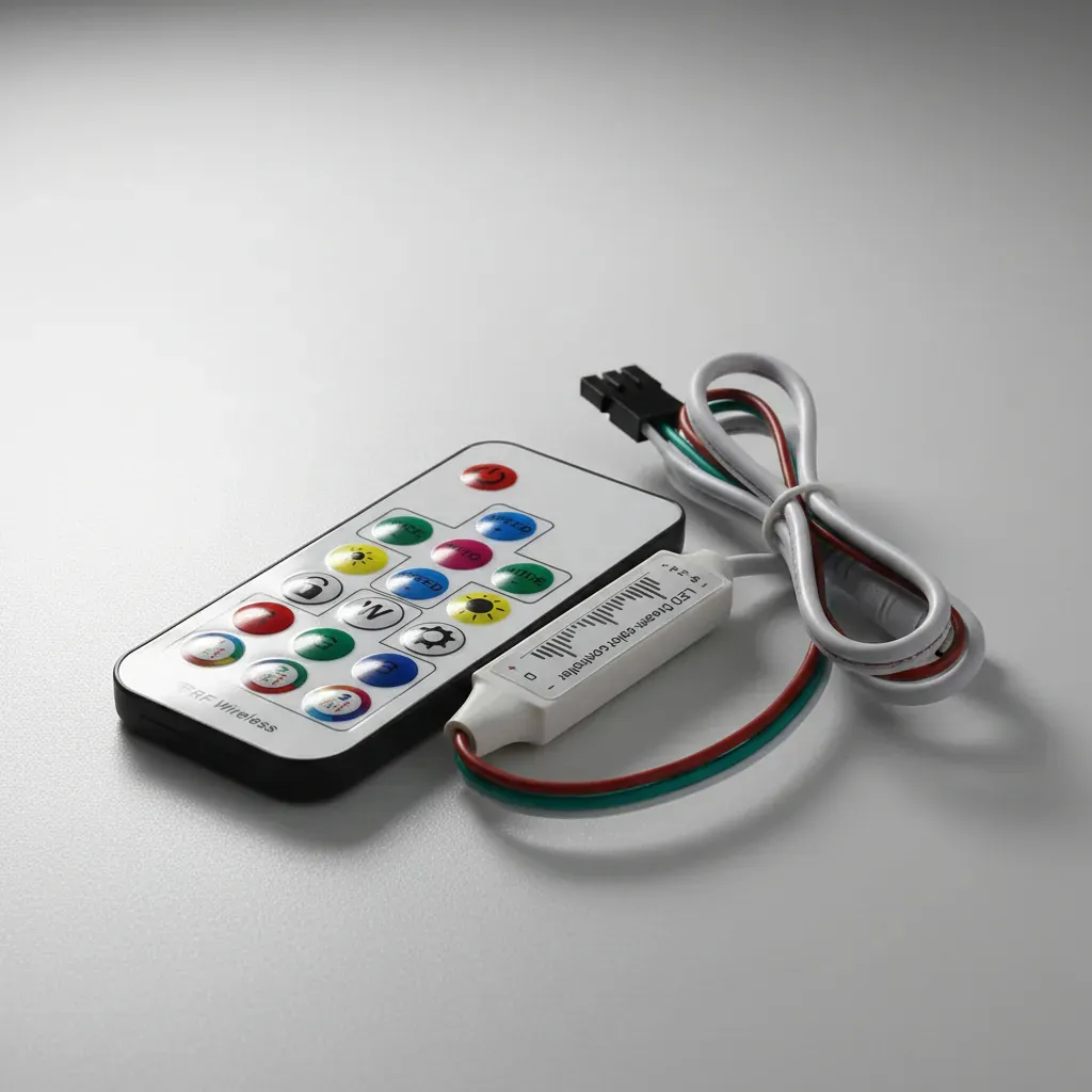 As 17 teclas multifunção permitem selecionar modos, ajustar cores, velocidade e efeitos dinâmicos de maneira prática. O produto é alimentado por bateria, possui excelente durabilidade e garante desempenho confiável em qualquer aplicação com LED digital.